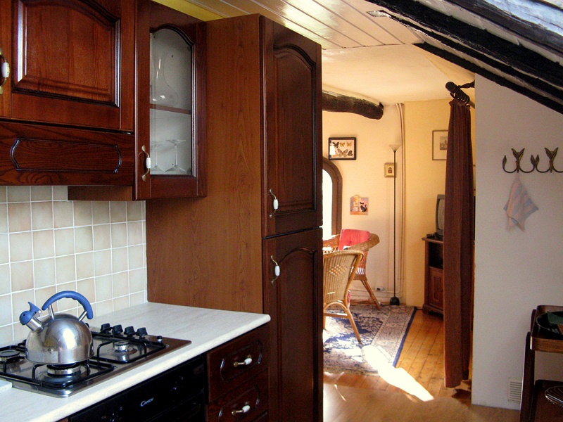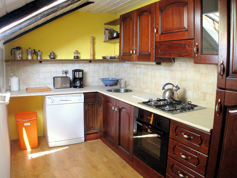 Das Bad ist großzügig und mit einer Dusche ausgestattet. Die Küche ist komplett u.a. mit Gasherd, Geschirrspüler, Toaster, Kaffeemaschine eingerichtet.
